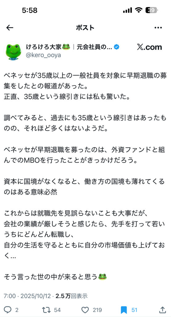 元々リクルートなんかは35歳以上なんかバンバン追い出してたけど、いよいよ、この流れか