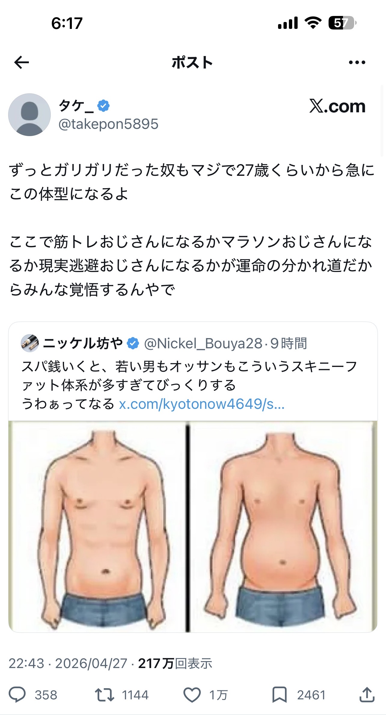 27歳は、ガリガリだった奴もスキニーファットになり