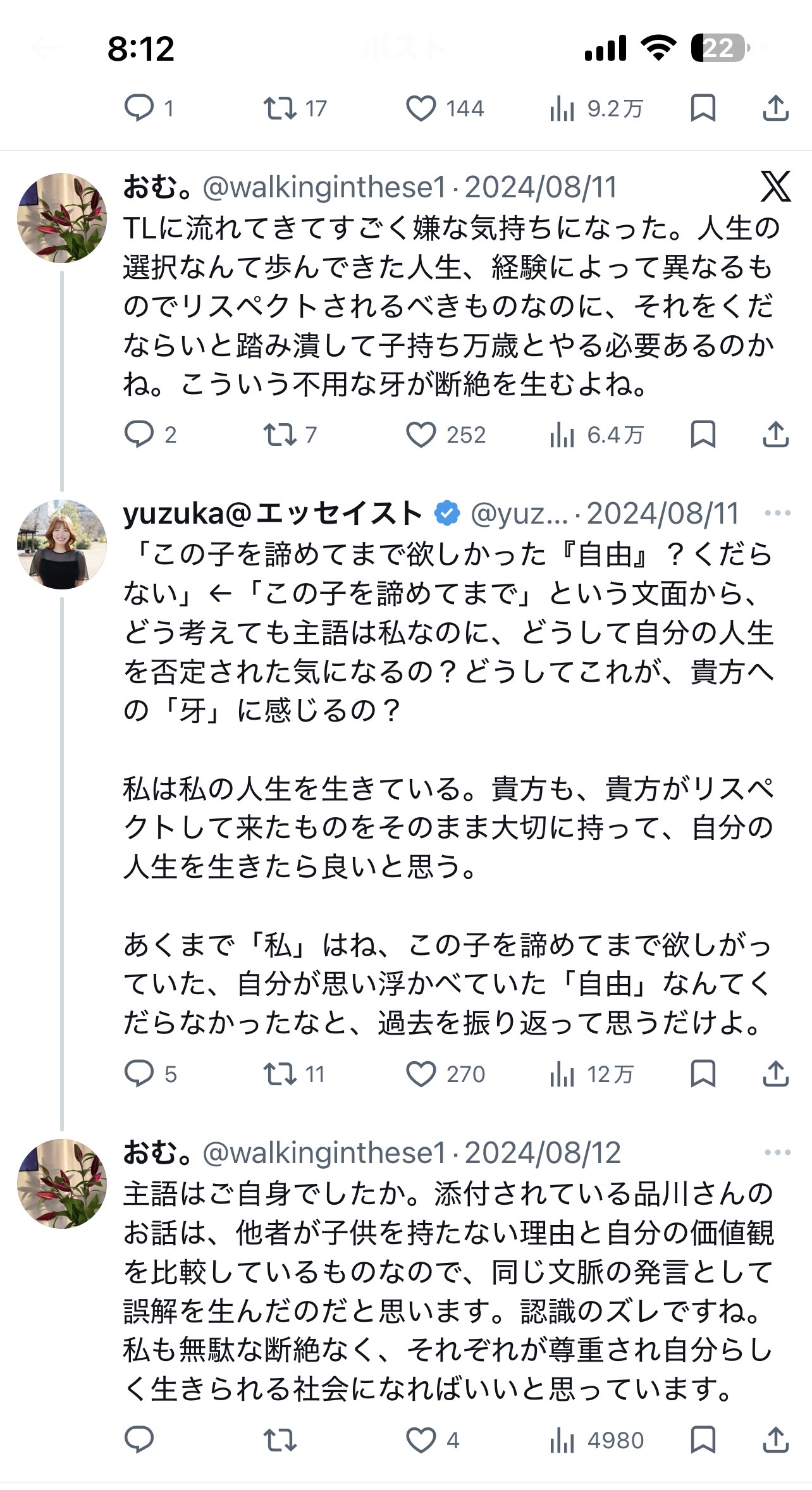 私はダメです、劣等です、子持ち様ありがとうございます、でいいじゃん。なんでいちいち敗者が対等に張ろうとするのだろう?