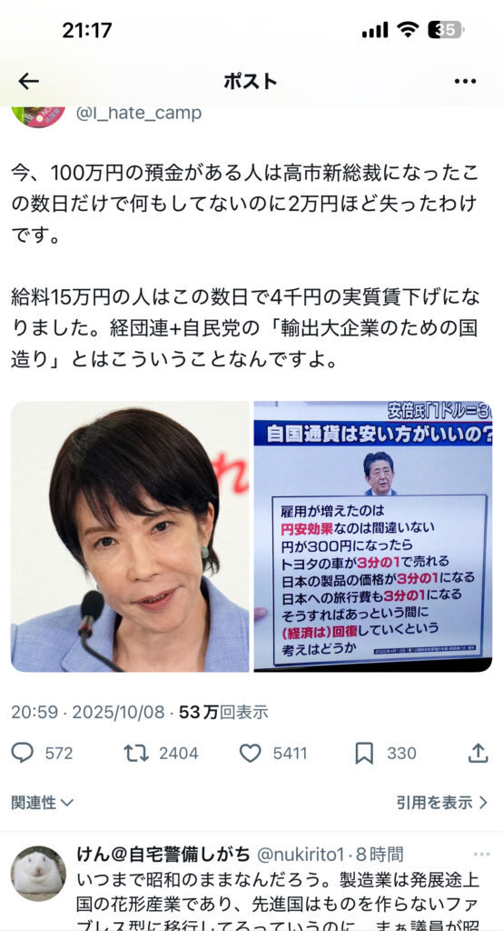 完璧に西園寺の予言通りに円安になったの、わかりますか?ここ数週間、「高市=円安」と言い続けてきました。