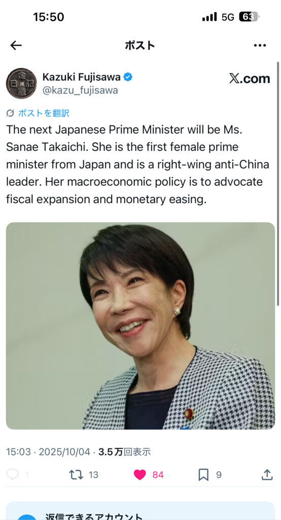 林、小泉であれば、対抗できる余地がありましたが、高市早苗が総理に決まった今、彼女の政策は